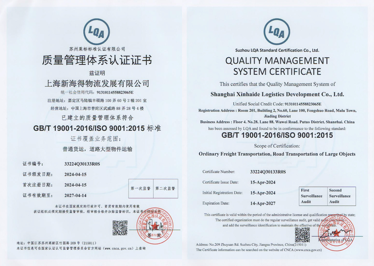 新海得物流嚴(yán)格按現(xiàn)代物流操作流程進(jìn)行標(biāo)準(zhǔn)化運(yùn)作。已通過國際質(zhì)量管理體系ISO9001:2015體系認(rèn)證。運(yùn)用健全的客戶服務(wù)管理系統(tǒng)、車輛管理系統(tǒng),財務(wù)管理系統(tǒng)。在查詢、監(jiān)控、追蹤、結(jié)算等方面與客戶做到無縫對接,打造了專業(yè)高效的客戶服務(wù)體系。
